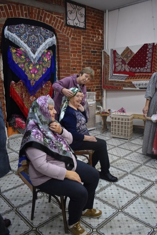 Не обошлось и без мастер-класса по ношению платка, и весёлой игровой программы в тематике музейной выставки.
