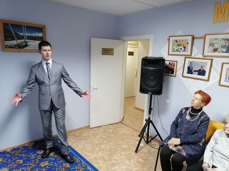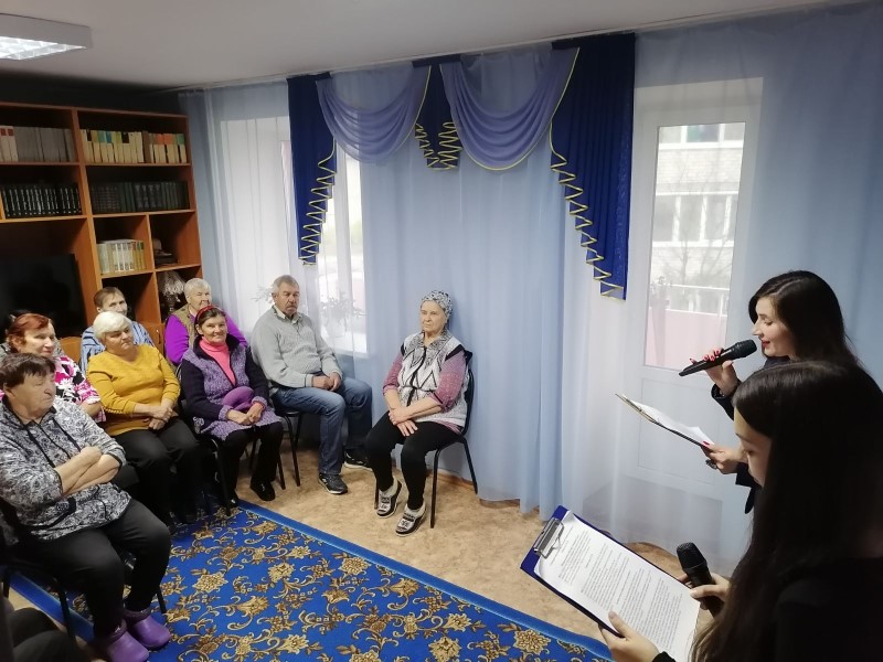 Дружная, позитивная, душевная атмосфера царила сегодня в отделении «Специализированный жилой дом для граждан пожилого возраста и инвалидов», ведь в гости к жителям отделения приехали артисты из ДК «МАЯК». Творческая группа ДК «МАЯК» провела развлекательно-познавательную программу «Осень жизни красками искрится». Звучали только любимые песни в исполнении Никиты Кротова и Евгении Соболевой. Участники мероприятия пели песни своей молодости, исполняли частушки, отвечали на вопросы викторины «Назад в СССР».