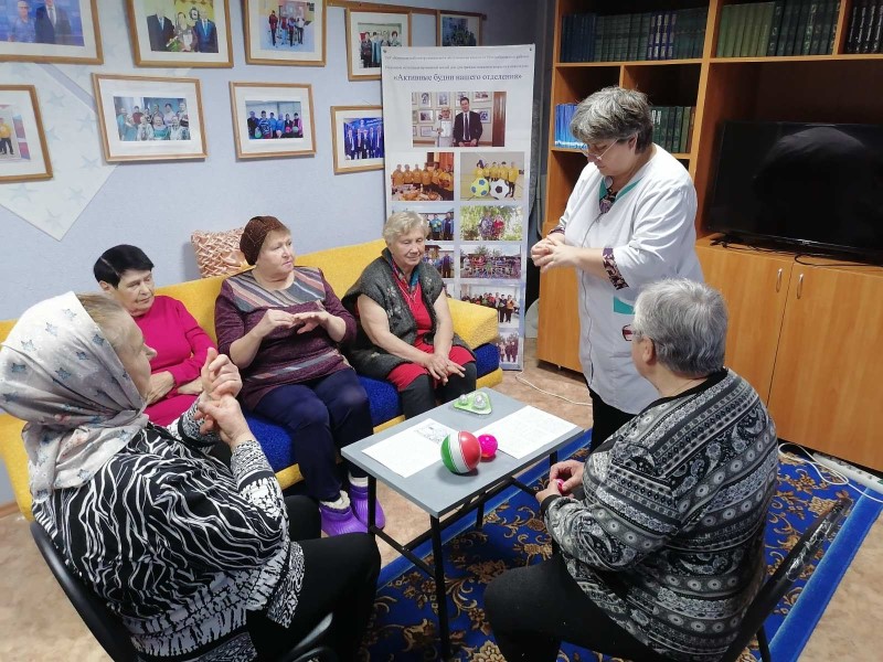Фельдшер отделения «Специализированный жилой дом для граждан пожилого возраста и инвалидов» Беляева М.И. продемонстрировала несколько приёмов и упражнений из пальчиковой гимнастики, которые пожилые люди смогут делать и самостоятельно.