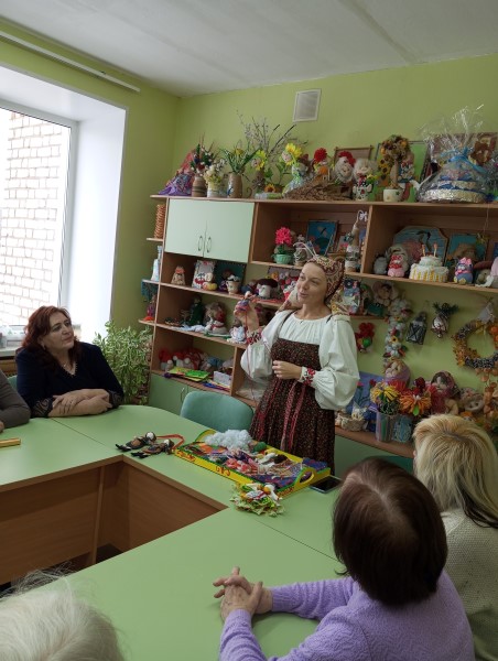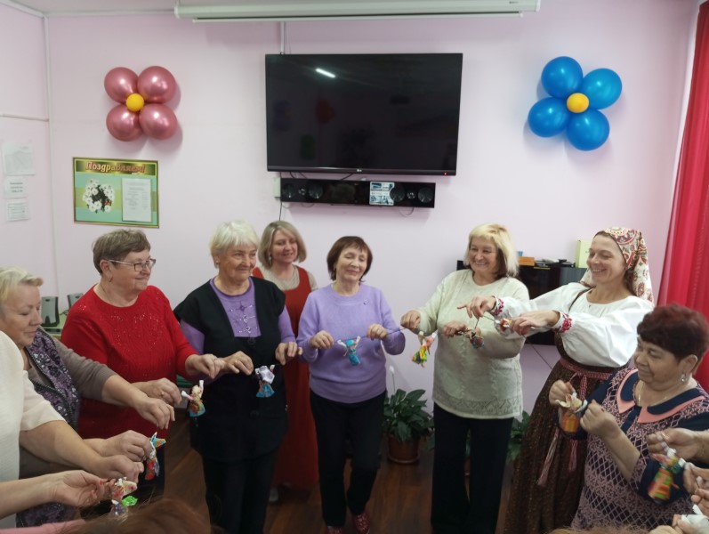 В преддверии Дня народного единства для обслуживаемых ГБУ КЦСОН Краснобаковского муниципального округа специалистами ДК «Маяк» Натальей Александровной Чиркиной и Татьяной Крускиной был проведен мастер-класс "Хоровод народных кукол" по изготовлению народной куклы « Радостея». Вначале наши обслуживаемые вместе с Татьяной Крускиной размяли свои пальчики, взбодрились и отправились творить народную куколку Радостея. Наталья Александровна рассказали интересную историю возникновения этой куклы. История этой куклы была удивительно трогательной, окутанной красивыми преданиями. Благодаря особенной технологии изготовления, руки куклы всегда были подняты вверх. И, согласно крестьянским преданиям, кукла всегда являлась на помощь тем, кто оказывался в мрачном месте, терял надежду, горевал. Кукла была подарком, с надписью «Не унывай и рук не опускай!» Словно крик радости, кукла встречала на пороге долгожданных гостей, принося в дом улыбки и радость, свет и тепло, доброту и любовь. В завершении мастер-класса , изготовленные куколки и их создатели –наши обслуживаемые, объединились в один единый хоровод - как символ народного единства людей разных традиций и культур.