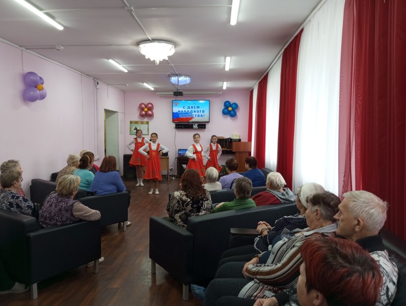 03.11.2023г. в Дневном отделении ГБУ КЦСОН Краснобаковского муниципального округа, накануне государственного праздника - День Народного Единства, который отмечается 4 ноября по всей стране, прошел праздничный концерт «В Единстве наша сила», подготовленный артистами ДК « Ударник». Наша страна - многонациональное государство. Именно в единении народов заключается сила и мощь России.