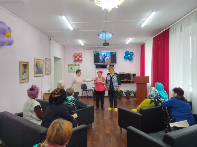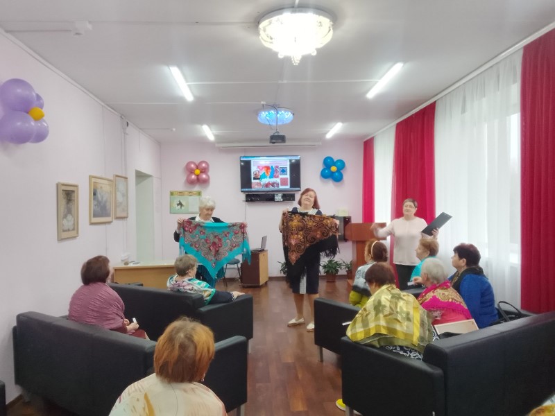 Для обслуживаемых отделения дневного пребывания Жарковой Т.И. провела познавательно-игровую программу «Оклад для женского лица». Мы говорили об элементе гардероба, который является предметом мужского, женского и детского гардероба. Он может быть носовым, головным, шейным, нагрудным. Дизайнеры также предлагают использовать данный аксессуар в качестве ремня, браслета, топа и пр. Этот аксессуар - всем известный платок!