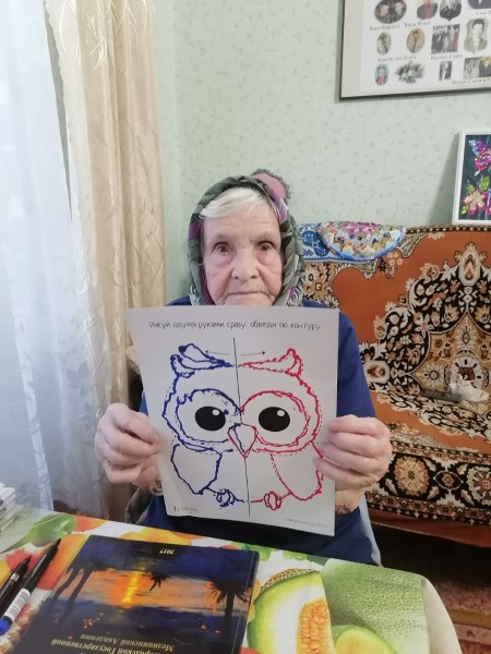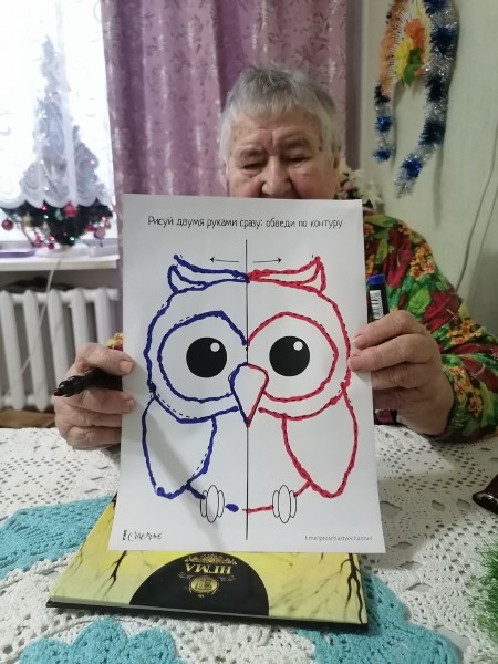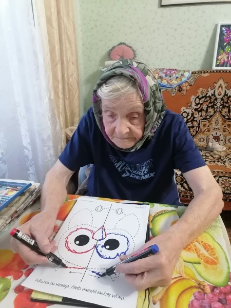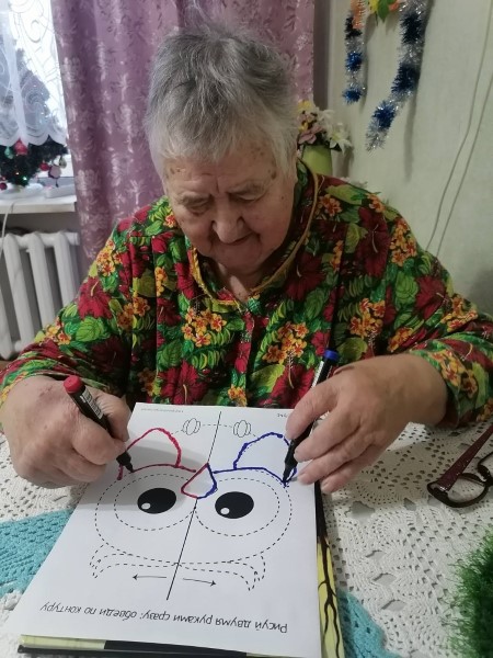 В отделении «Специализированный жилой дом для граждан пожилого возраста и инвалидов» проходят занятия по нейробике в рамках программы «Ключи к здоровью». С большим удовольствием жители «серебряного возраста» выполняют упражнения на синхронное рисование. Взяв в обе руки по карандашу, проживающие одновременно рисуют разные фигуры, что приводит к активизации деятельности мозга.