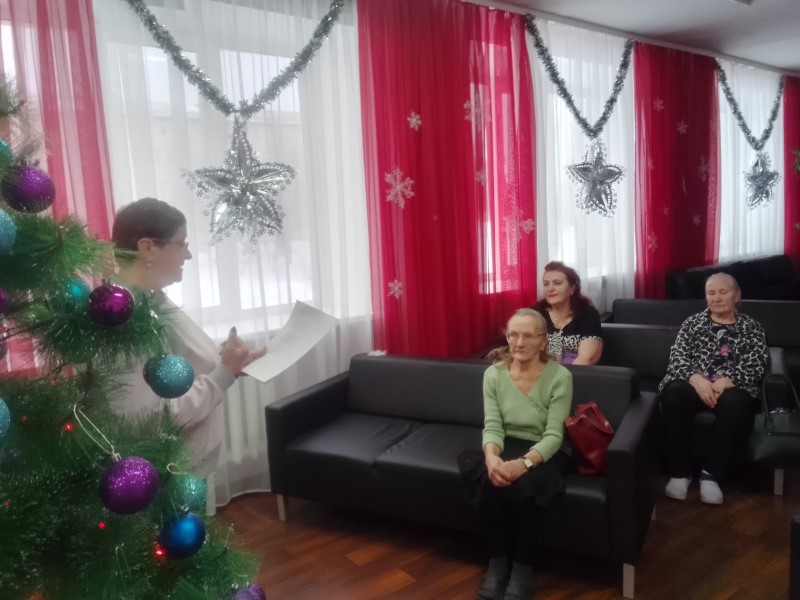 Для обслуживаемых отделения дневного пребывания Жарковой Т.И. проведена познавательная игровая программа «Идёт зима, аукает...». Какое прекрасное время года — зима! Все вокруг такое белоснежное, сказочное: и пушистый снежок, что укутал землю, и морозные узоры на окнах, и деревья в инее, и резные снежинки. Участники программы окунулись в мир чудес и волшебства, узнали много интересного о зиме. Ведущая программы поделилась с отдыхающими отделения дневного пребывания зимними секретам, с народными приметами и поверьями, с пословицами и поговорками, скороговорками.