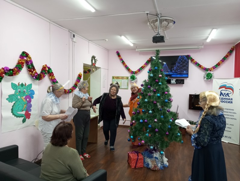 В преддверии Нового года в дневном отделении ГБУ КЦСОН Краснобаковского муниципального округа прошло музыкально – развлекательное мероприятие "Новый год к нам мчится». Наши обслуживаемые разыграли новогоднюю сказку «Снегурочка и зайчики».