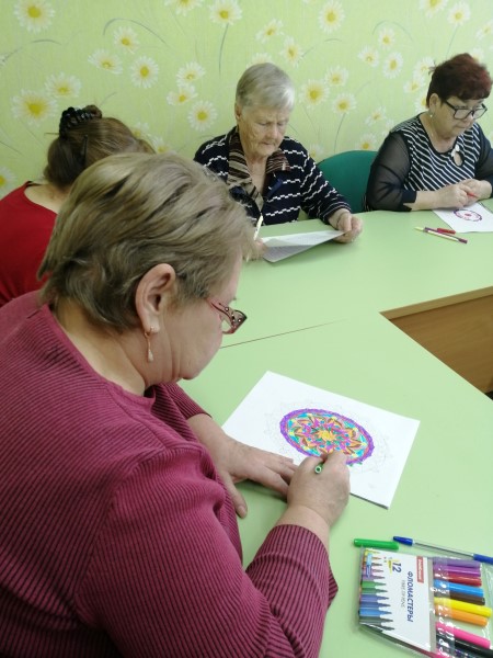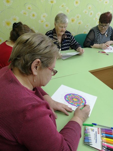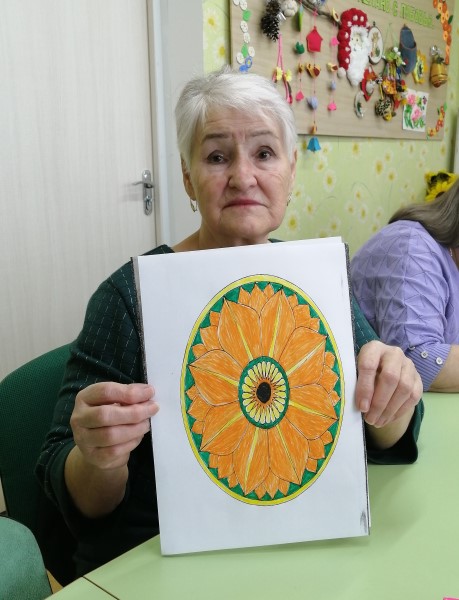 Современная психология предлагает множество способов выражения негативных эмоций. Зачем запирать психическую энергию в себе, если есть возможность выпустить её в безопасной и конструктивной форме? Психолог Центра Алимова С.В. познакомила обслуживаемых Отделения дневного пребывания с интересной методикой исцеление искусством, а именно с мандалотерапией. Это естественный и радостный способ улучшения эмоционального состояния, снятия напряжения, выражения чувств, который способствует развитию творчества, а также художественному самовыражению. В процессе работы с мандалой у участников происходит внутренняя работа, результаты которой проявляются в мыслях, поведении, чувствах, отношении к себе и окружающим. Все мандалы получились уникальными, каждая по - своему хороша, разнообразна их динамика и в рисунке просматриваются внутренние процессы, которые актуальны сейчас в жизни авторов.