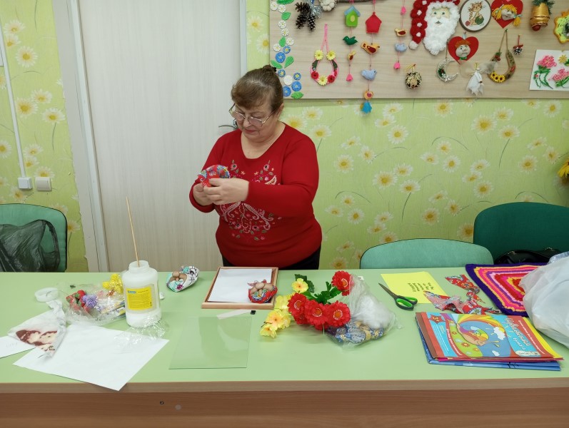 «Праздник каждый день!» - именно с таким девизом нужно проживать свою жизнь. Любое мгновение может обернуться приятным и неожиданным событием. Инструктор по трудотерапии Науменко Т.В. научила обслуживаемых дневного отделения ГБУ КЦСОН Краснобаковского муниципального округа делать подарочное панно. Его можно преподнести близкому человеку на любой праздник. Также его можно использовать в качестве коробочки для денег. Панно выполнено в чулочной технике. Милые мордашки чулочно- текстильной куклы украшают панно. Мягкие, домашние, уютные и милые поделки смогли смастерить наши начинающие рукодельницы.