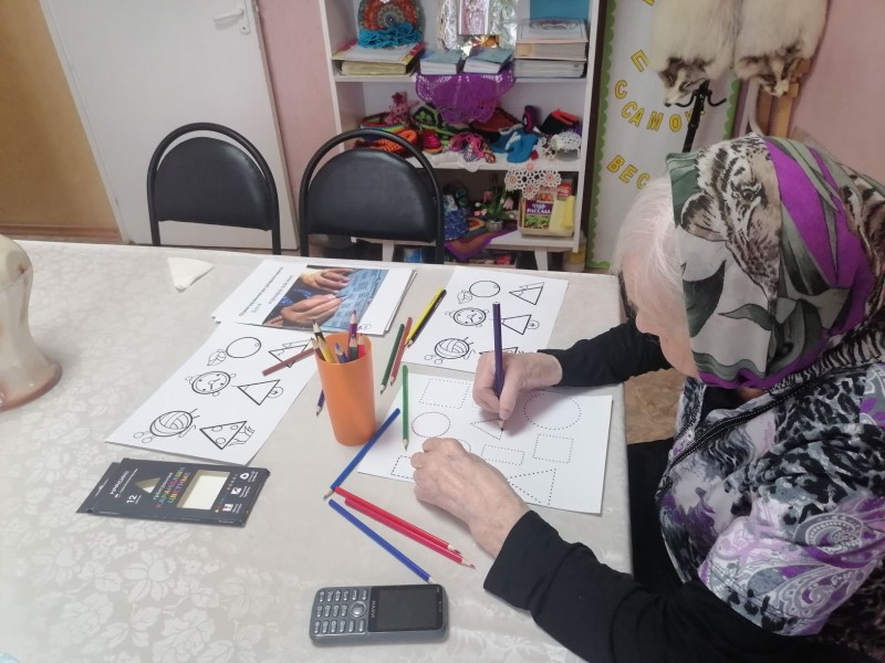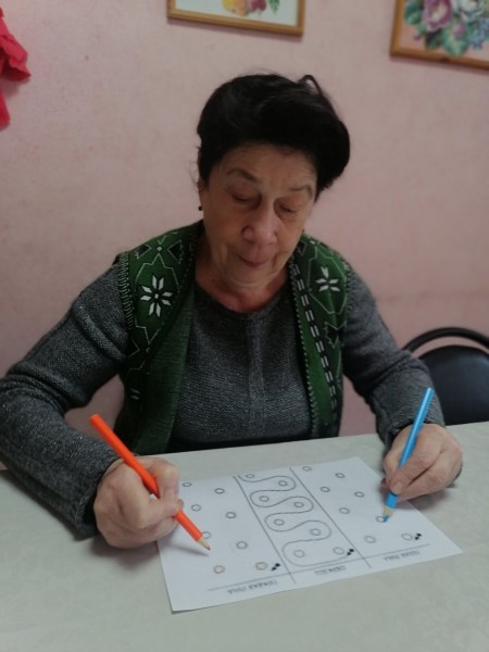 В отделении «Специализированный жилой дом для граждан пожилого возраста и инвалидов» продолжается работа по программе «КЛЮЧИ К ЗДОРОВЬЮ».Пожилые люди проходят психологические тесты для тренировки памяти и внимания, используя технику "Нейробика", рисуя одновременно двумя руками.Одновременные движения обеих рук активируют сразу оба полушария мозга. Создаются новые нейронные связи, а значит, процессы анализа и синтеза информации проходят быстрее. Как следствие, повышается умственная активность и работоспособность. Полезно ли рисование для пожилых людей? Безусловно, в зрелом возрасте рисование полезно по многим причинам, в том числе и потому, что улучшает двигательные навыки. Для людей пожилого возраста, это также важно, как и для детей. Моторика и зрительная координация, способность двигаться – все это только улучшится с появлением нового хобби в вашей жизни.