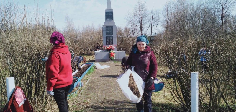 Социальные работники отделения социально-бытового обслуживания на дому №5 приняли активное участие в субботнике по уборке территории вокруг памятника