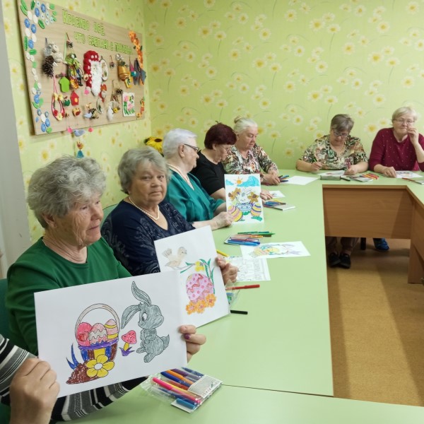 В дневном отделении ГБУ КЦСОН Краснобаковского муниципального округа прошло занятие по рисованию. Наши обслуживаемые с увлечением разукрашивали картинки на тему приближающего праздника - Пасхи.