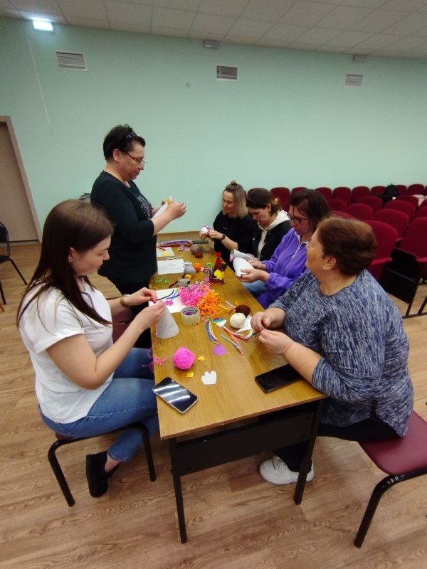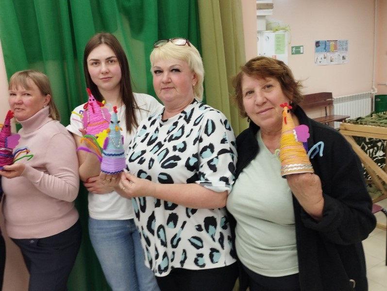Работники отделений социально-бытового и социально-медицинского обслуживания на дому п. Шеманиха приняли активное участие в мастер-классе по изготовлению пасхальной курочки, который проходил в Доме культуры п. Шеманиха