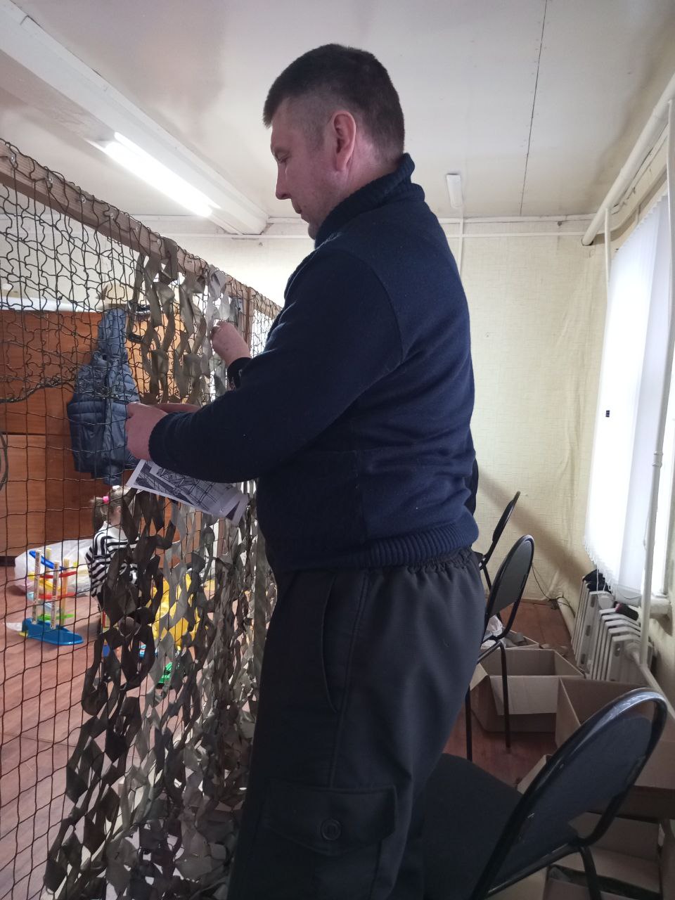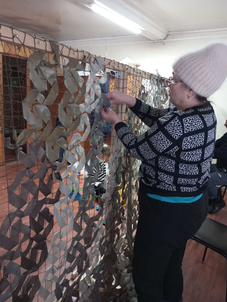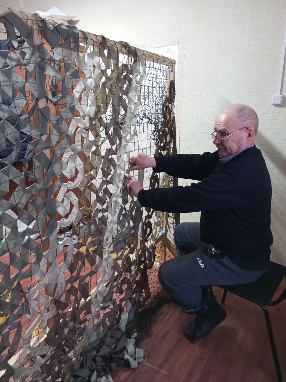 В с. Носовая социальные работники ГБУ "КЦСОН Краснобаковского муниципального округа" продолжают плести маскировочные сети для СВО