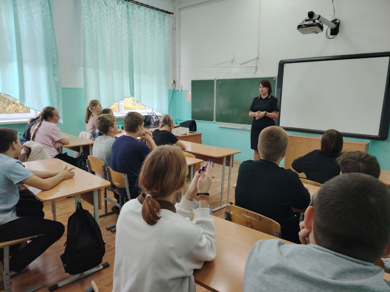 А также инспектором по пропаганде безопасности дорожного движения лейтенантом полиции Панфиловой Елены Николаевны, подробно провела беседу о правилах поведения на дорогах. Она подчеркнула возрастные ограничения для вождения мототранспорта и напомнила обучающимся, с какого возраста разрешено управлять мотоциклами и питбайками.
