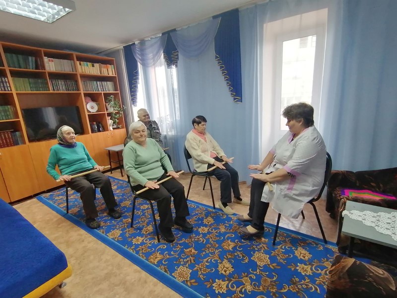 В отделении «Специализированный жилой дом для граждан пожилого возраста и инвалидов» прошел фитнес час «Здоровье в наших руках». Фельдшер отделения Беляева М.И. показала участникам мероприятия упражнения для самомассажа рук.