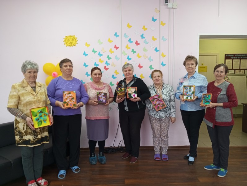 В дневном отделении ГБУ КЦСОН Краснобаковского муниципального округа на протяжении смены инструктор по трудотерапии Науменко Т.В. с нашими обслуживаемыми создавала цветочную композиция из капрона.