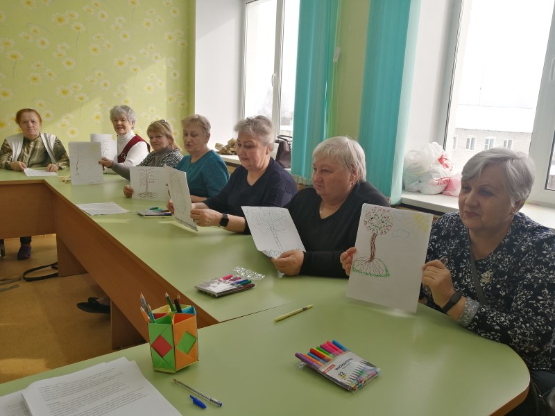 Все проективные упражнения – это работа с нашим подсознанием. Работа с подсознанием с помощью проекции - это хорошее подспорье в решении многих психологических трудностей. Одним из таких проективных образов есть образ дерева. Для обслуживаемых Отделения дневного пребывания психолог Алимова С.В провела терапевтическую работу с образом дерева. Выполнив простое упражнение, вся группа работала над улучшением взаимоотношений. Такие занятия обладают терапевтическим эффектом. Терапия состоит в осознании своих скрытых желаний и нахождении векторов работы.