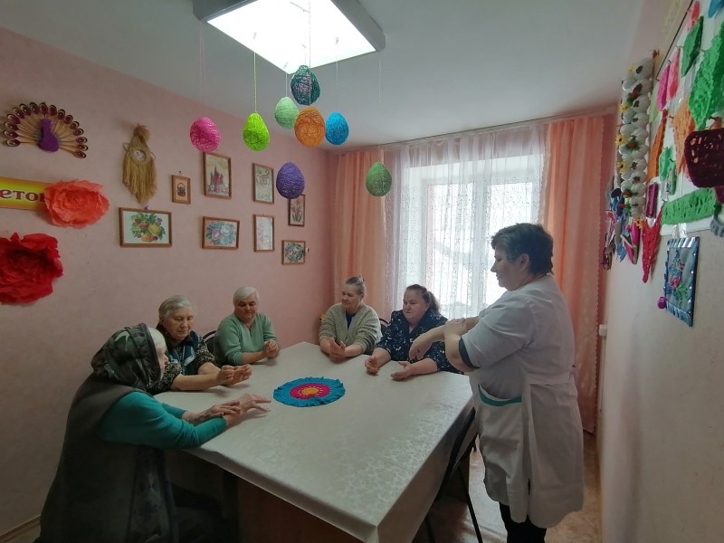 В отделении «Специализированный жилой дом для граждан пожилого возраста и инвалидов» прошел фитнес-час «Здоровье в наших руках». Фельдшер отделения Беляева М.И. првела практическое занятия с пожилыми людьми по обучению основам самомассажа рук. Массаж рук – удивительно полезная процедура. Она снимает усталость, улучшает кровообращение, оказывает благотворное влияние на нервную и сердечно-сосудистую систему.