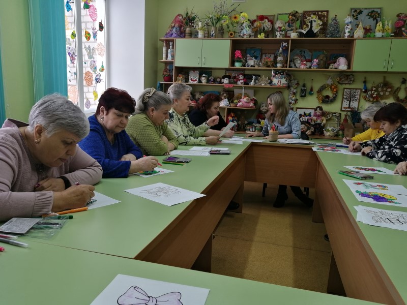 В Отделении дневного пребывания психолог Алимова С.В провела групповое занятие с элементами арт-терапии, обслуживаемые с помощью карандашей и красок погружались в себя, свои эмоции и на интуитивном уровне выливали все свои мысли и переживания, негативные эмоции и ощущения на бумагу. В ходе занятия психолог рассказала, что рисование имеет лечебное действие, краски и кисточка – хороший способ в борьбе с нервным перенапряжением, помогает самовыражению, повышает настроение.