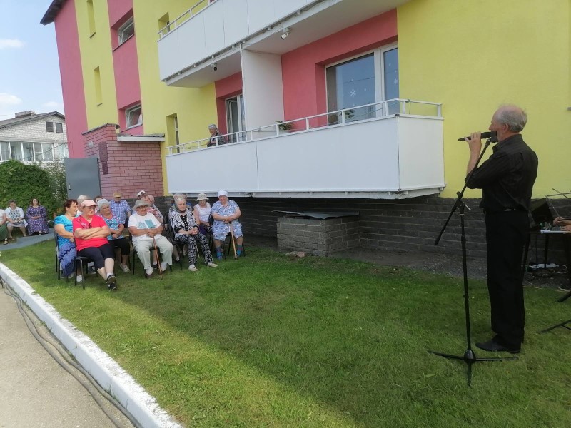 Много удовольствия пожилым людям доставили музыкальные номера артистов РЦДиК. Во время проведения концертной программы среди жильцов царила дружеская и теплая атмосфера. А в завершении праздника прошла фотосессия с ромашками.