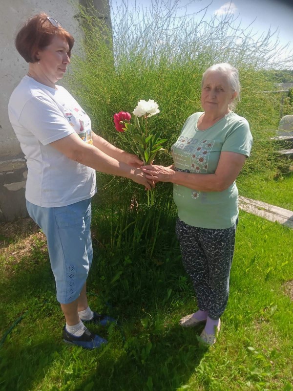 Социальный работник отделения социально-бытового обслуживания на дому №4 поздравляет обслуживаемую Бархатову Т.И., ранее работавшую в ФАПе п. Шеманиха, с профессиональным праздником Днем медицинского работника