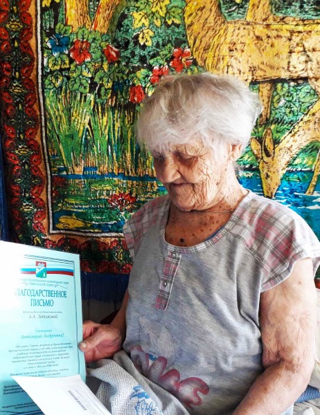 Поздравление обслуживаемой отделения социально-бытового обслуживания на дому №1 Зотиковой А.А. с 95-летием!
