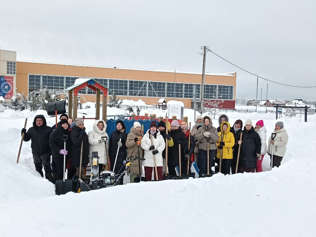 ГБУ "КЦСОН Краснобаковского муниципального округа" приняли участие в субботнике по очистке снега на территории парка Юных Богатырей и детской площадке в рамках проекта "Чистый округ"