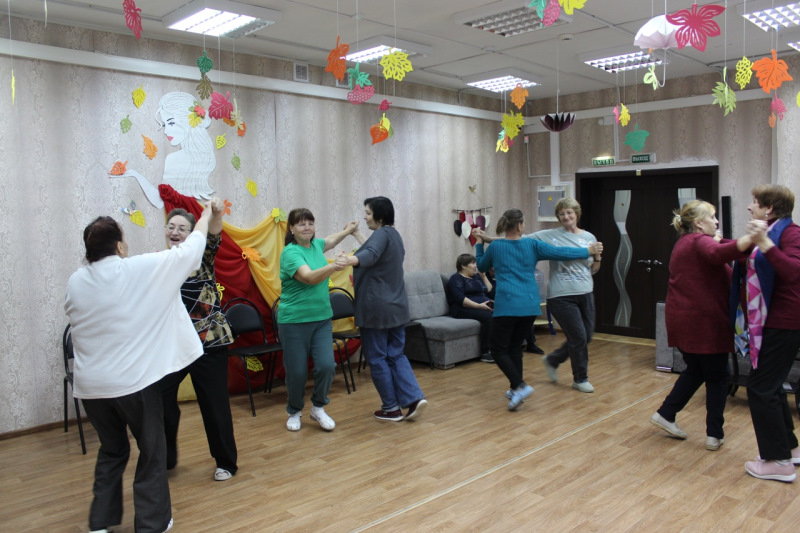 В отделении дневного пребывания для отдыхающих состоялась танцевально - игровая программа «Танцуют все!». Присутствующие с большим удовольствием танцевали: польку, ламбаду, твист, и др. Хорошее настроение не покидало каждого всё мероприятие. Танцевали и смеялись от души!